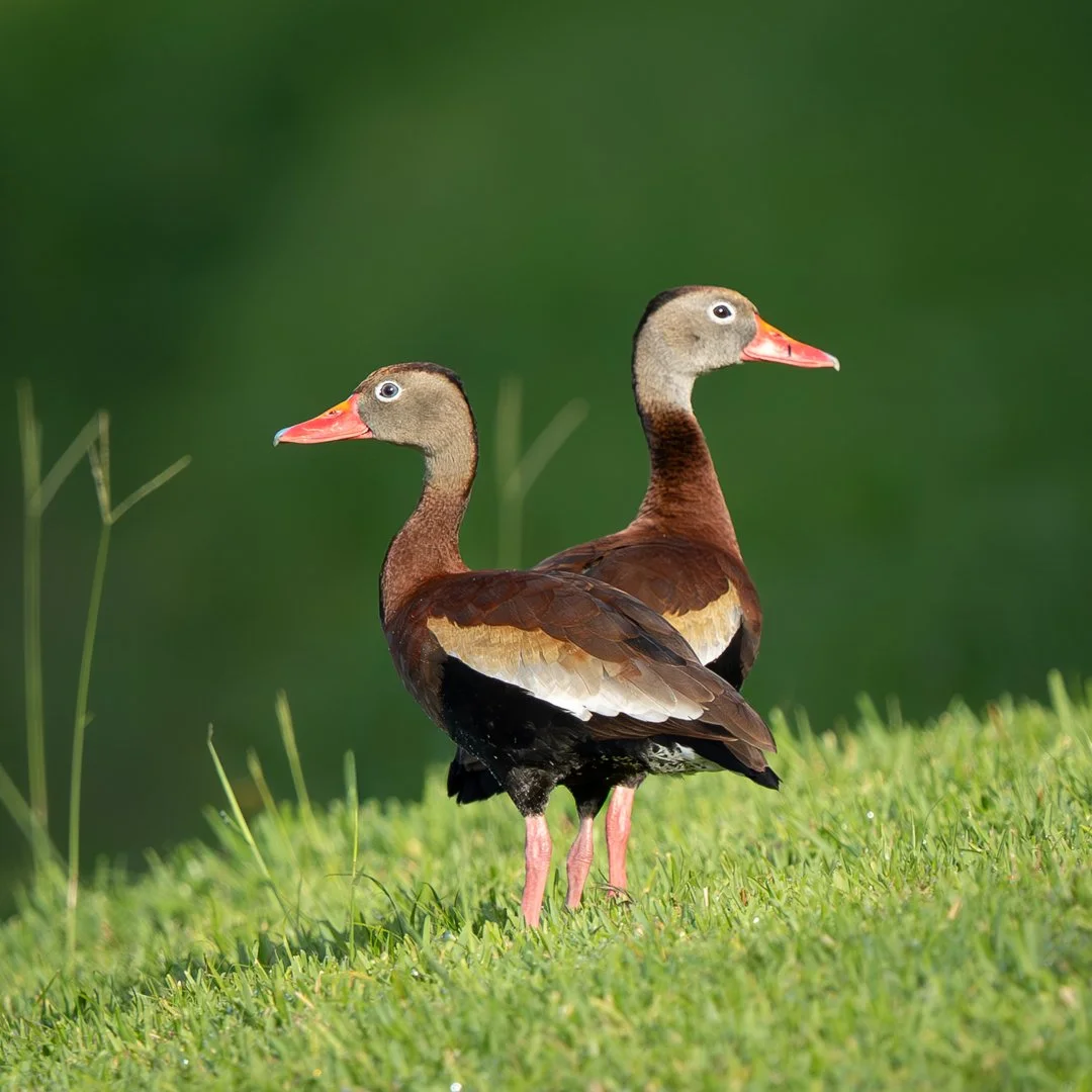 Whistling ducks gather near the water's edge, heads turning steadily. Each bird scans the sky and reeds, alert for movement, protecting their group from predators with constant, silent vigilance.